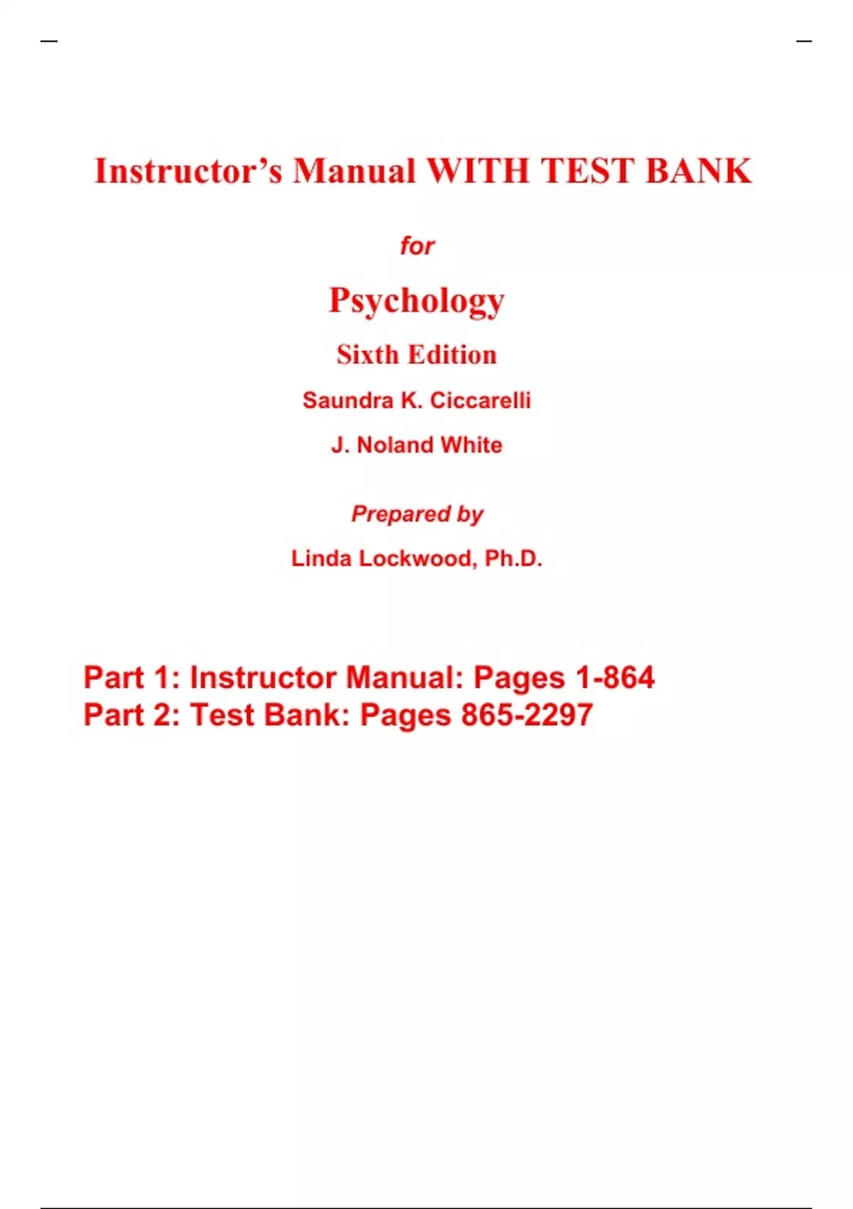 This Is Original 6th Edition of Instructor Manual and Test Bank From Original Author. All Other Files in the market are fake/old Edition. Other Sellers Have changed old Edition Number to new But Instructor Manual and Test Bank is old Edition. Instructor Manual (Lecture Notes) with Test Bank for Psychology 6th Edition Saundra Ciccarelli, Noland White (All Chapters, 100% Original Verified, A+ Grade) Instructor Manual (Lecture Notes) with Test Bank for Psychology 6th Edition Saundra Ciccarelli, Noland White (All Chapters, 100% Original Verified, A+ Grade)