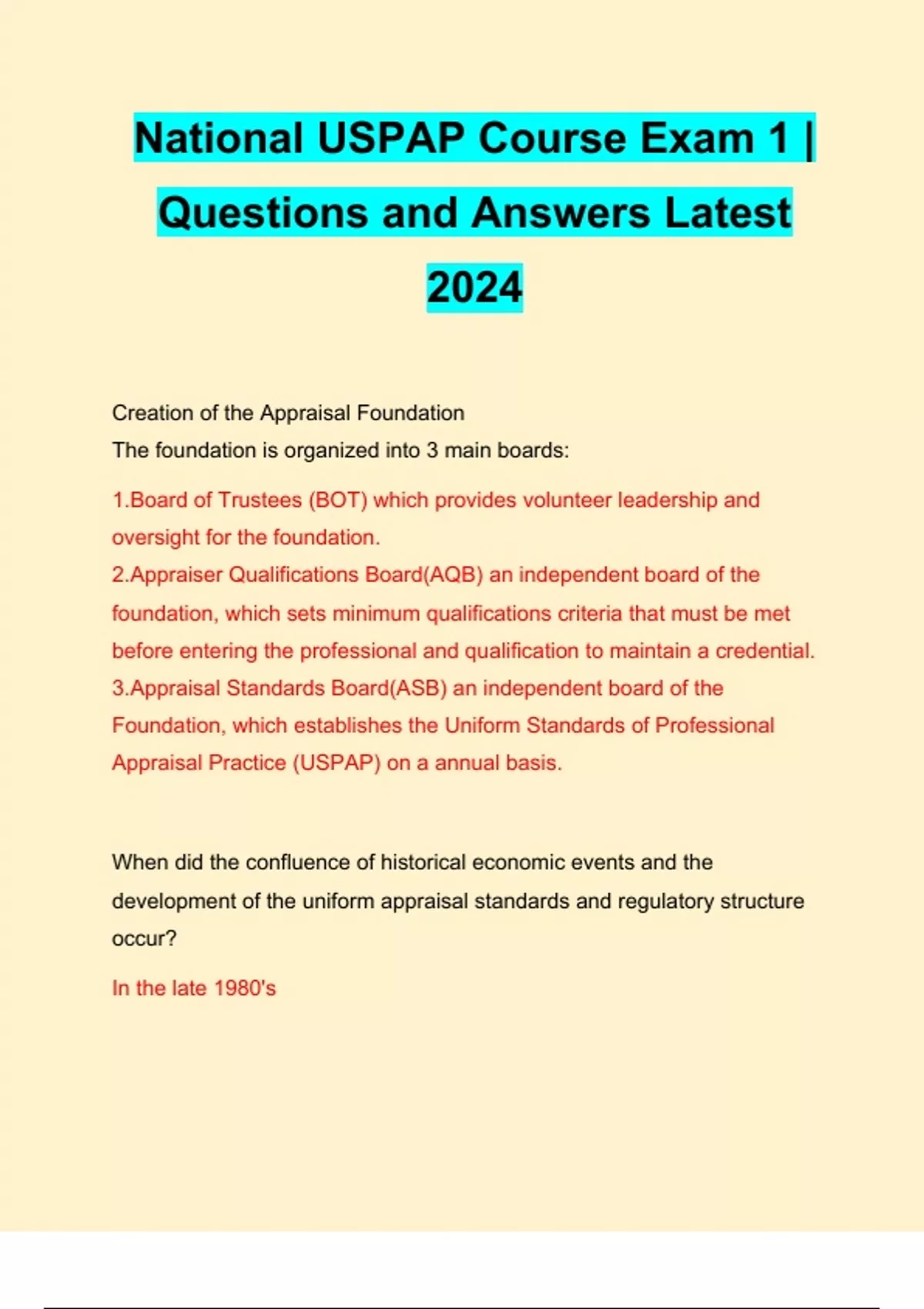 National USPAP Course Exam 1 | Questions and Answers Latest 2024 National USPAP Course Exam 1 | Questions and Answers Latest 2024 National USPAP Course Exam 1 | Questions and Answers Latest 2024