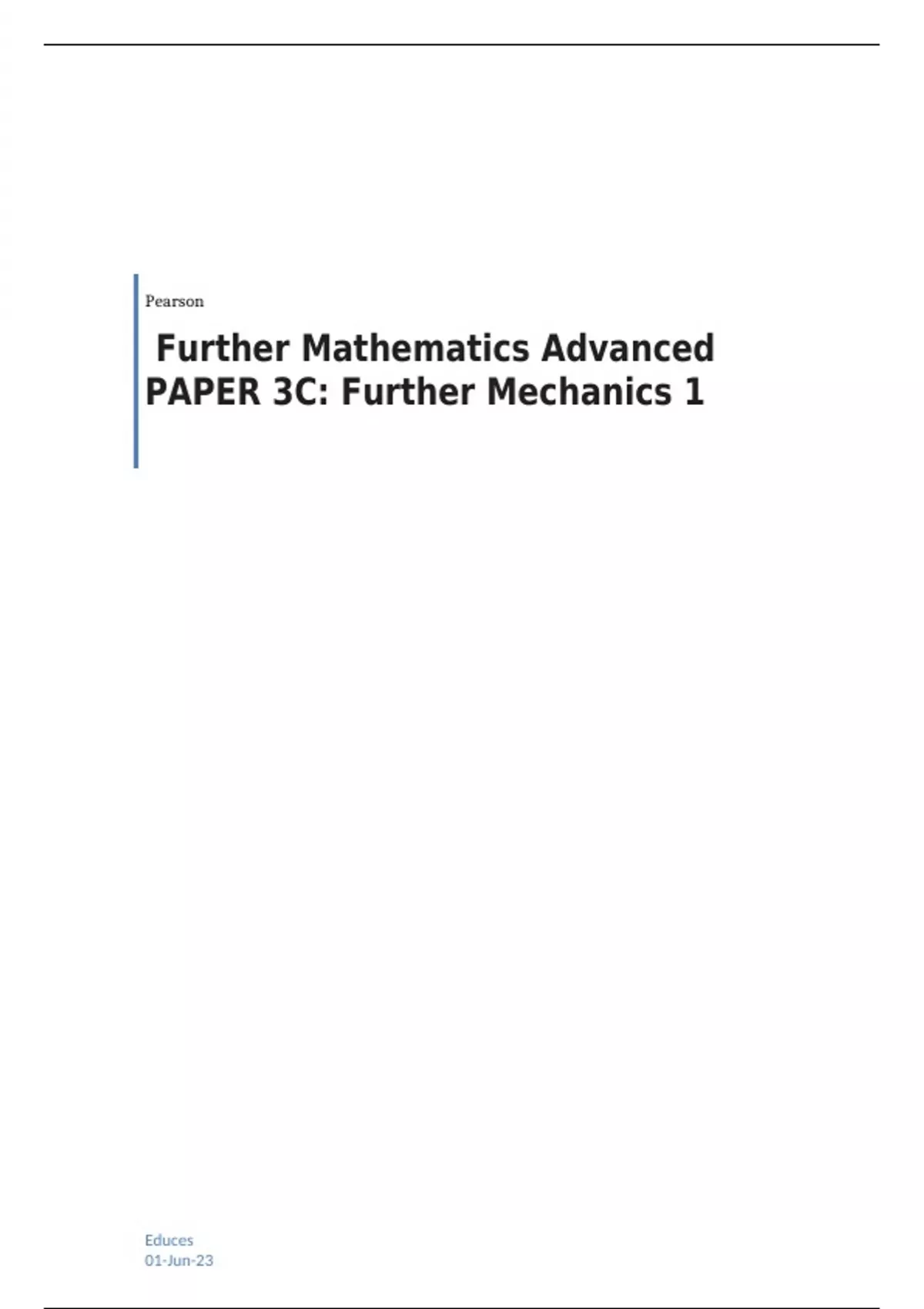Edexcel GCE A Level Further Mathematics (9FM0) Paper 3C QUESTION PAPER AND MARK SCHEME FOR JUNE 2023