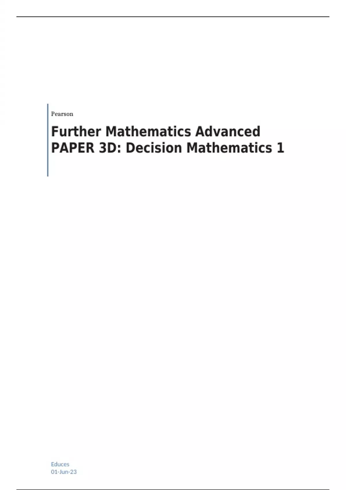 Further Mathematics Advanced PAPER 3D: Decision Mathematics 1