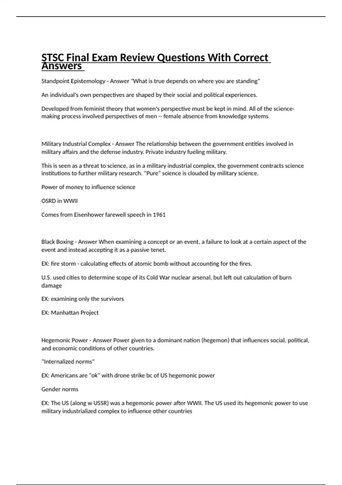 STSC Final Exam Review Questions With Correct Answers