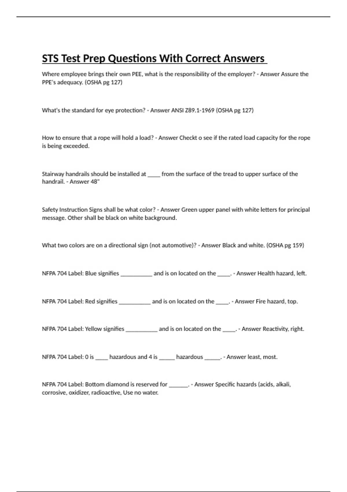 - sts test prep stuvia