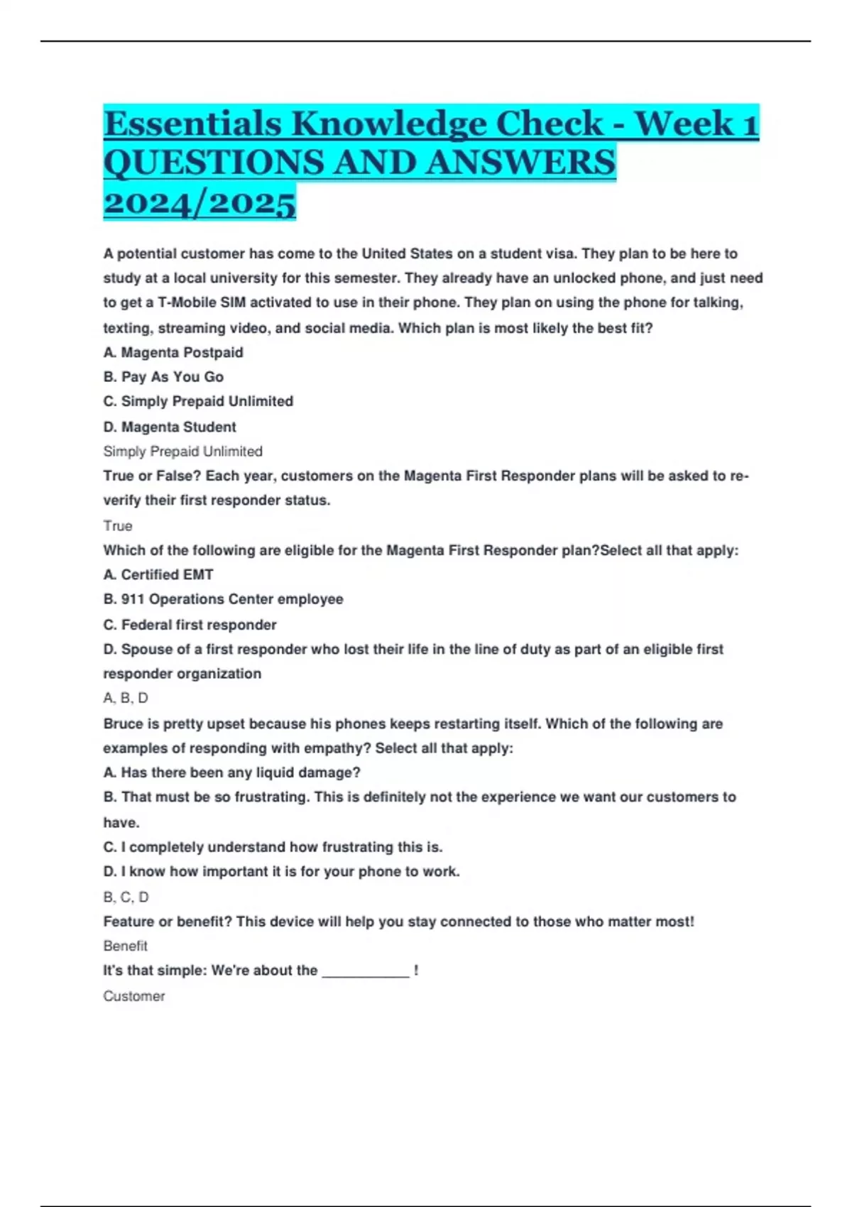 Essentials Knowledge Check - Week 1 QUESTIONS AND ANSWERS 2024/2025