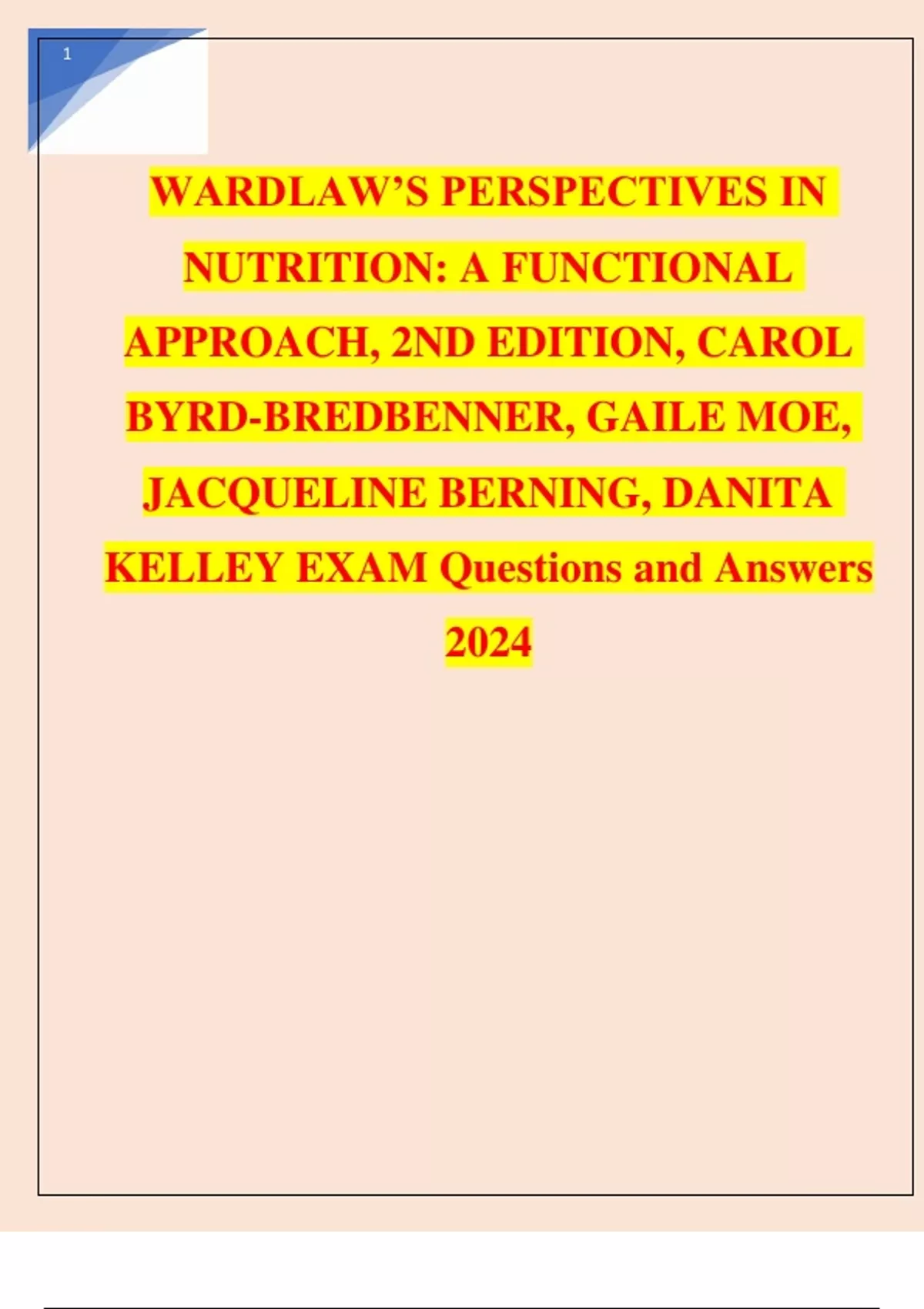 1 WARDLAW’S PERSPECTIVES IN NUTRITION: A FUNCTIONAL APPROACH, 2ND EDITION, CAROL BYRD-BREDBENNER, GAILE MOE, JACQUELINE BERNING, DANITA KELLEY EXAM Questions and Answers 2024