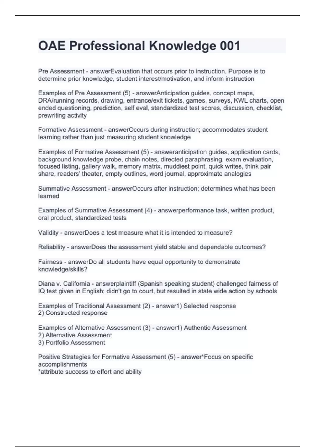 OAE Professional Knowledge 001.Written exams latest 2024 verified by experts