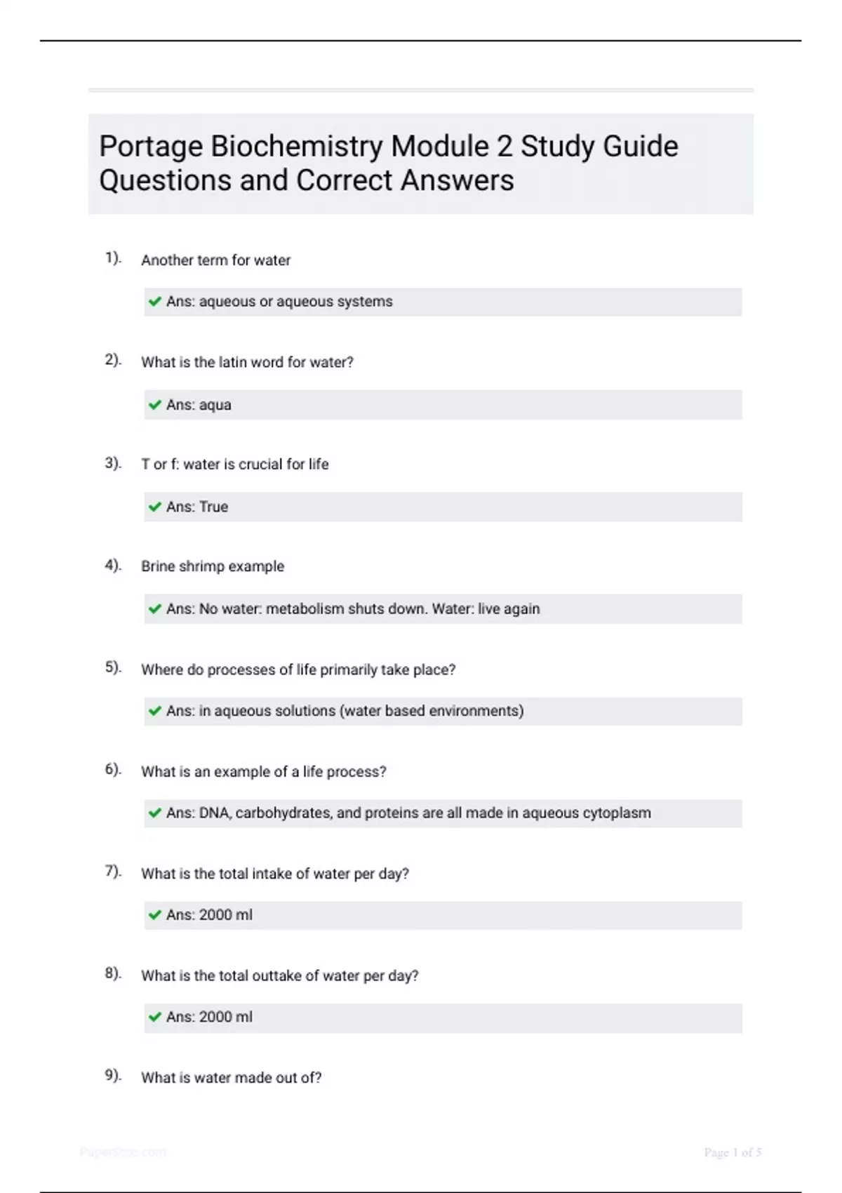 Portage Biochemistry Module 2 Study Guide Questions and Correct Answers