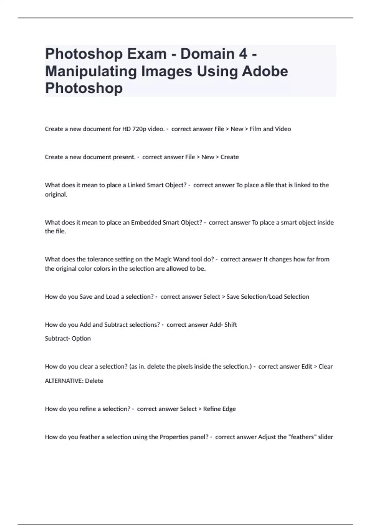 Photoshop Exam - Domain 4 - Manipulating Images Using Adobe Photoshop exam 2024