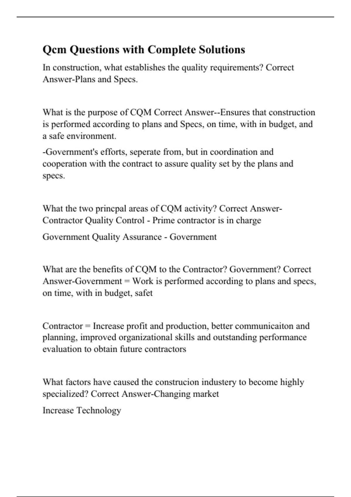 Qcm Questions with Complete Solutions