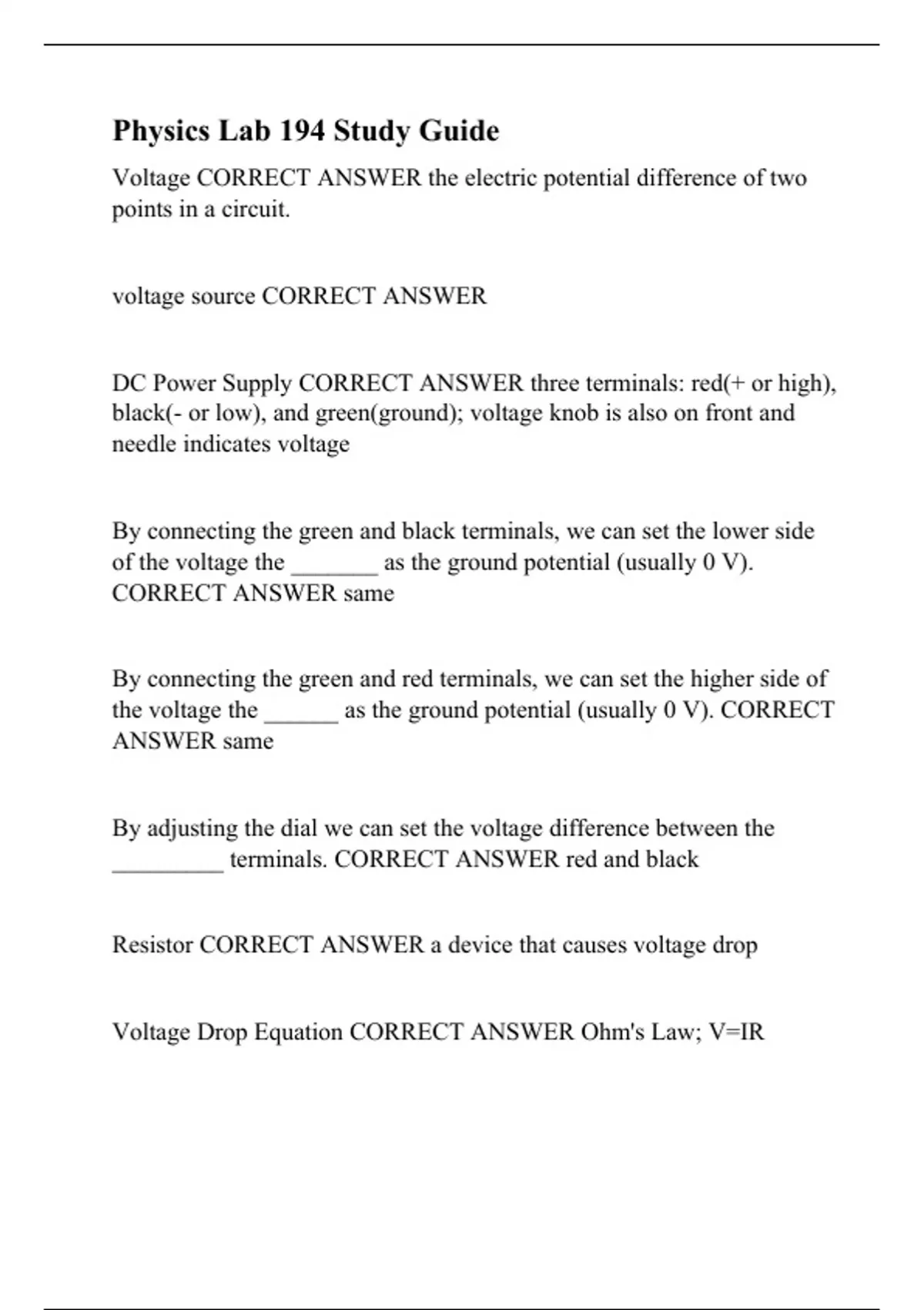 Physics Lab 194 Study Guide Questions With Complete Solutions