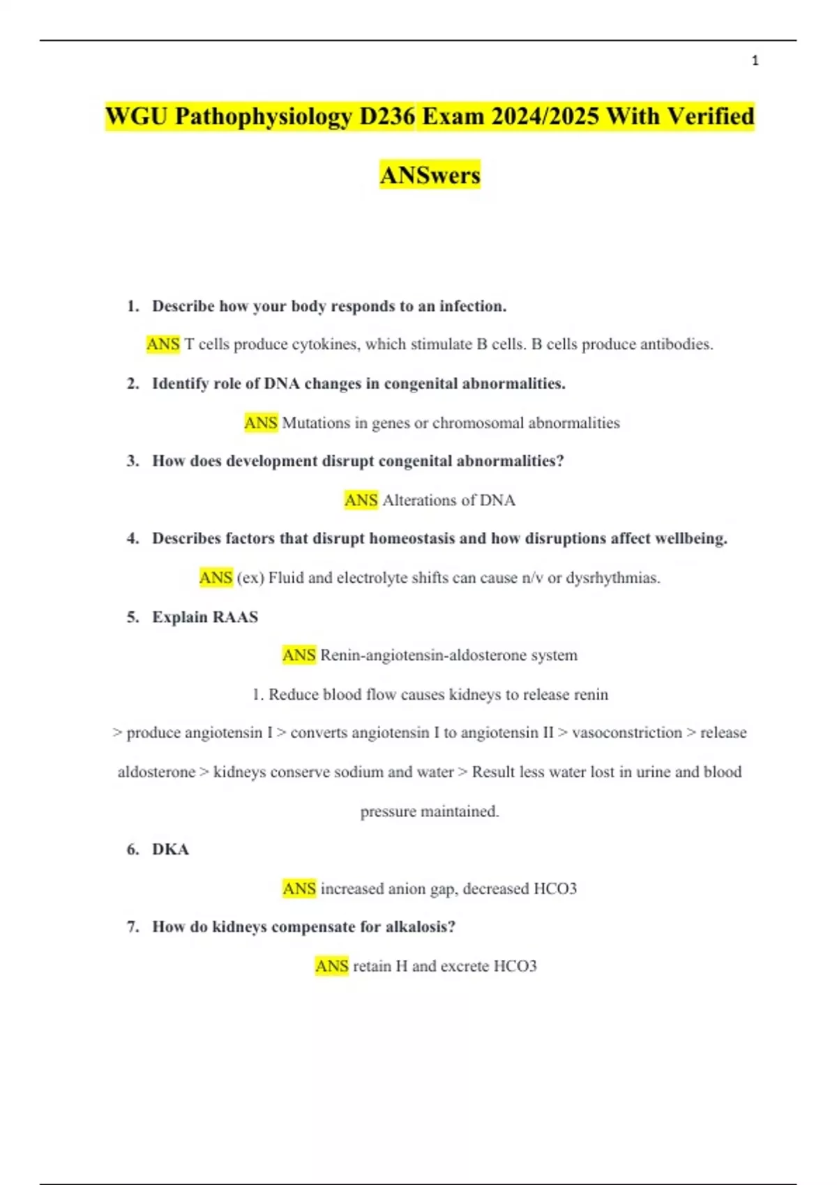 WGU Pathophysiology D236 Exam 2024/2025 With Verified ANSwers