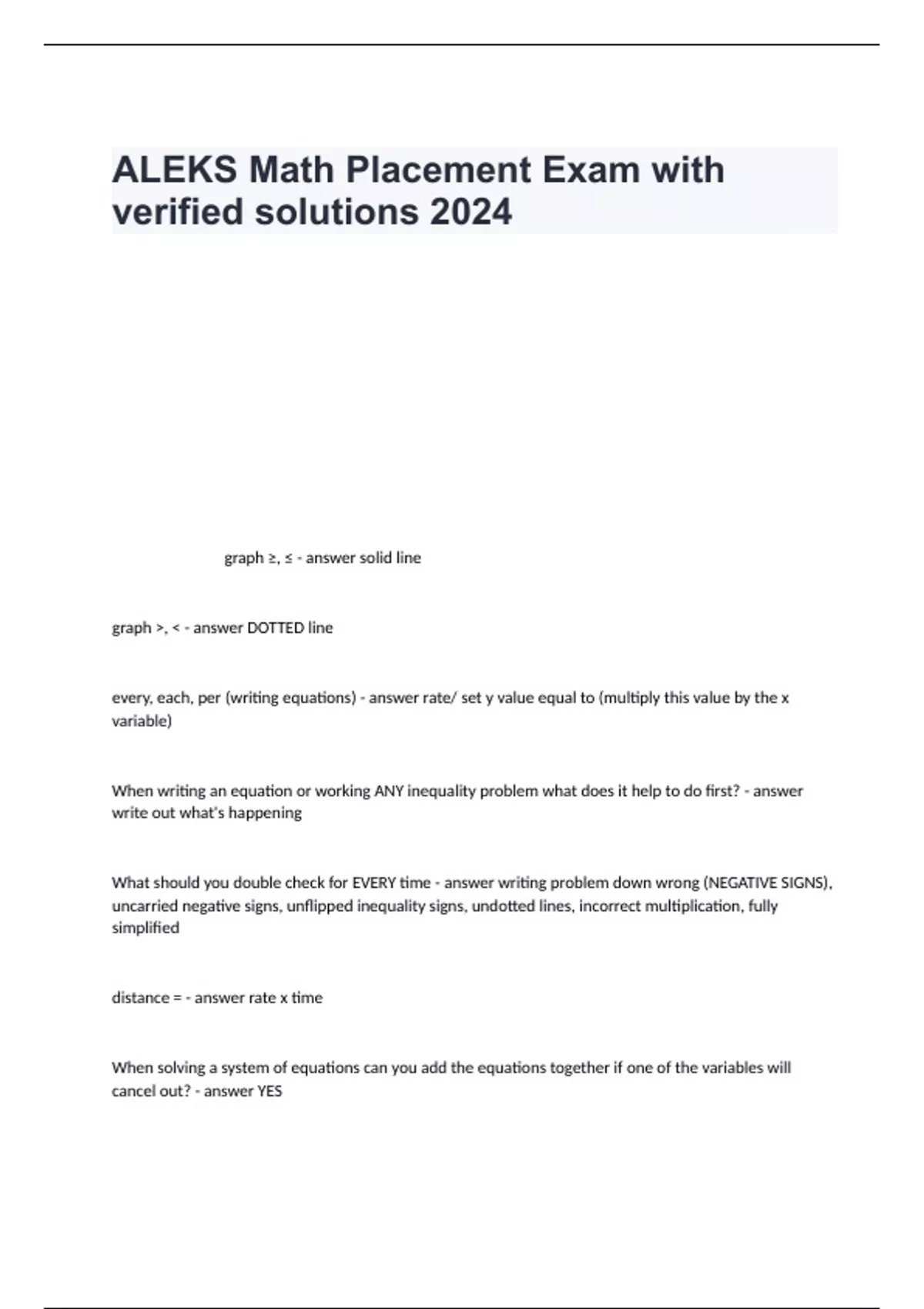 ALEKS Math Placement Exam with verified solutions 2024.