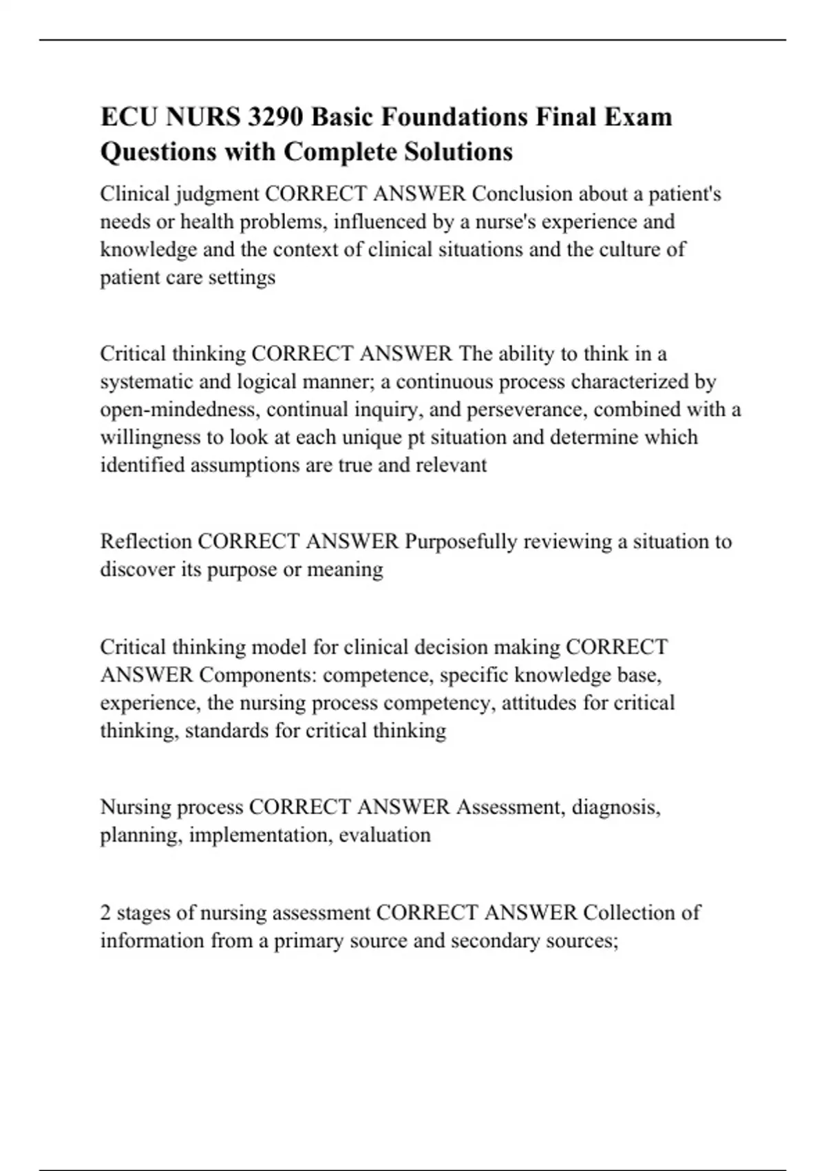 ECU NURS 3290 Basic Foundations Final Exam Questions with Complete Solutions