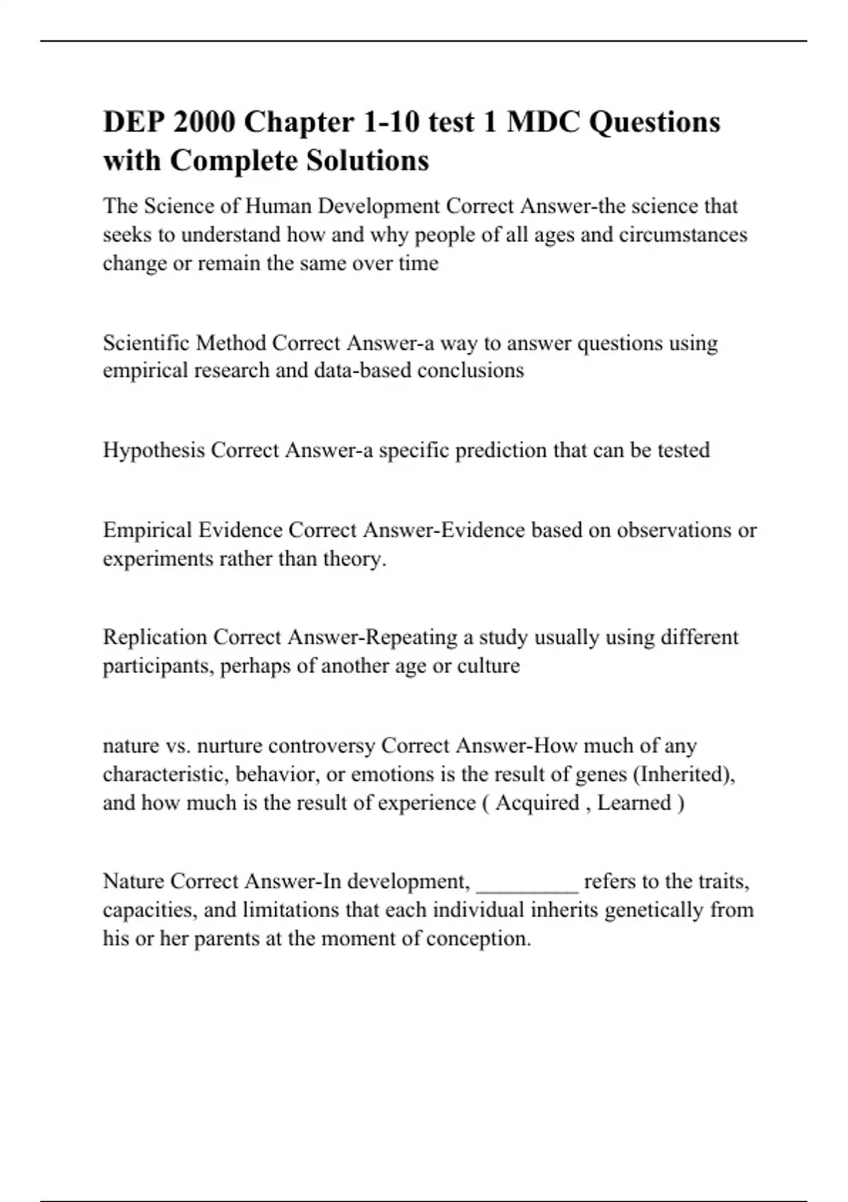 DEP 2000 Chapter 1-10 test 1 MDC Questions with Complete Solutions