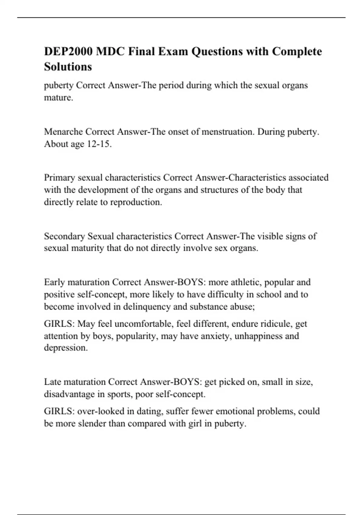 DEP2000 MDC Final Exam Questions with Complete Solutions