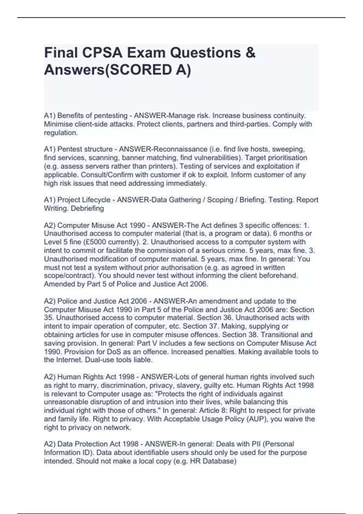 Final CPSA Exam Questions & Answers(SCORED A)