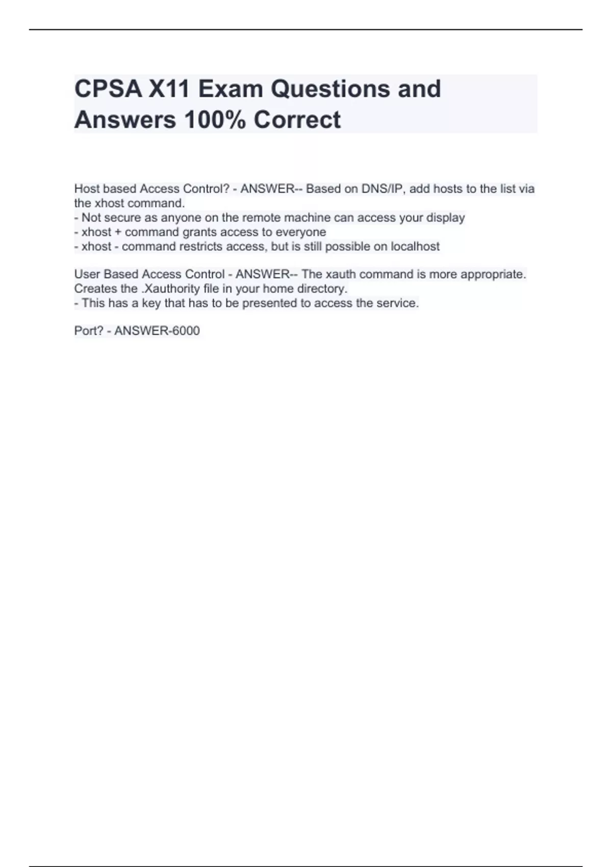 Host based Access Control? - ANSWER-- Based on DNS/IP, add hosts to the list via the xhost command. - Not secure as anyone on the remote machine can access your display - xhost + command grants access to everyone - xhost - command restricts access, but is still possible on localhost User Based Access Control - ANSWER-- The xauth command is more appropriate. Creates the .Xauthority file in your home directory. - This has a key that has to be presented to access the service. Port? - ANSWER-6000