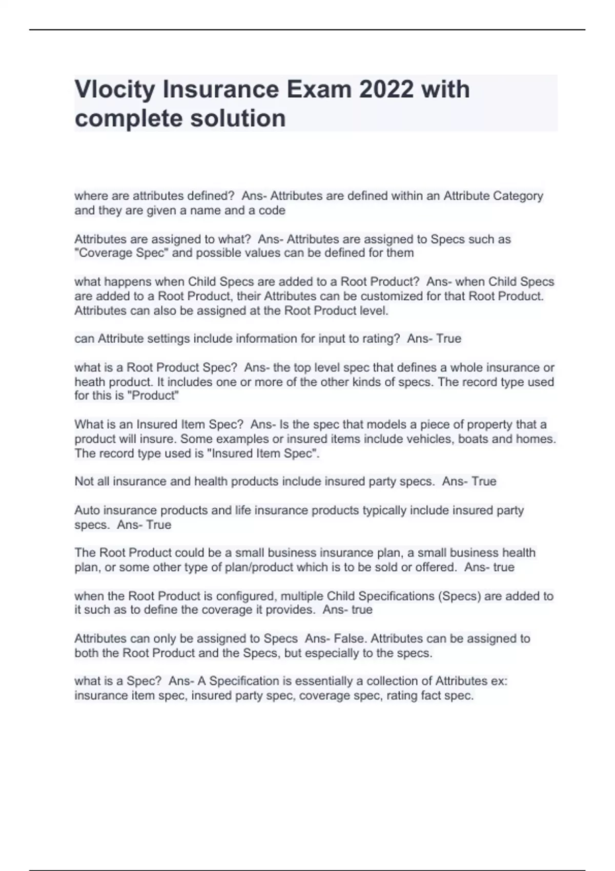 Vlocity Insurance Exam 2024 with complete solution