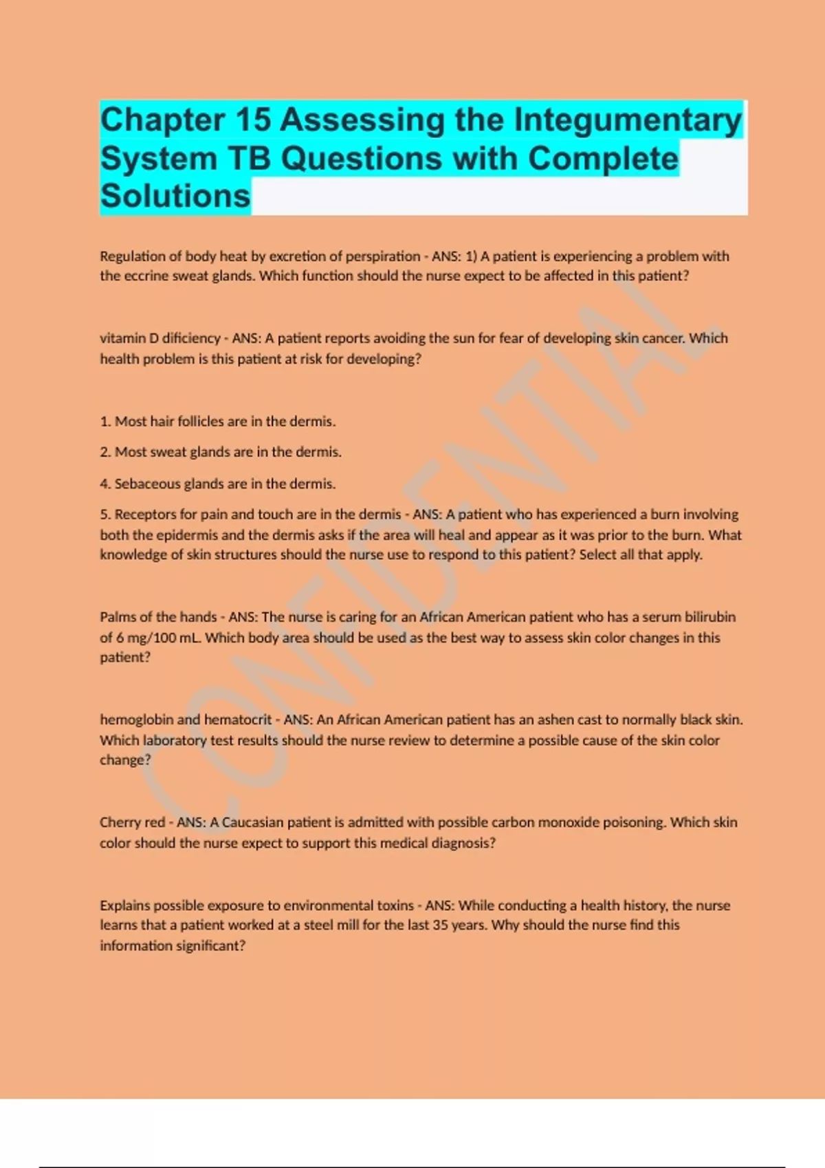 Chapter 15 Assessing the Integumentary System TB Questions with Complete Solutions