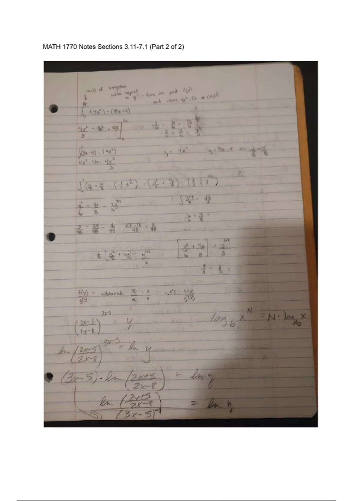 Calculus II Class Notes for Sections 3.11-7.1 (Detailed Hand-Written (Part 2 of 2)