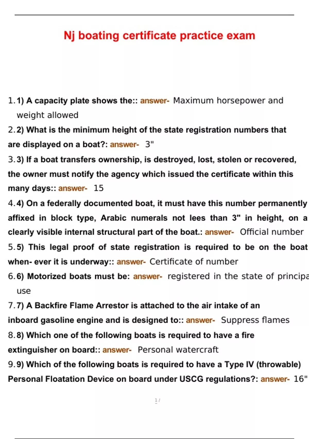 Nj boating certificate practice exam QUESTIONS & ANSWERS 2024 ( A+ GRADED 100% VERIFIED)
