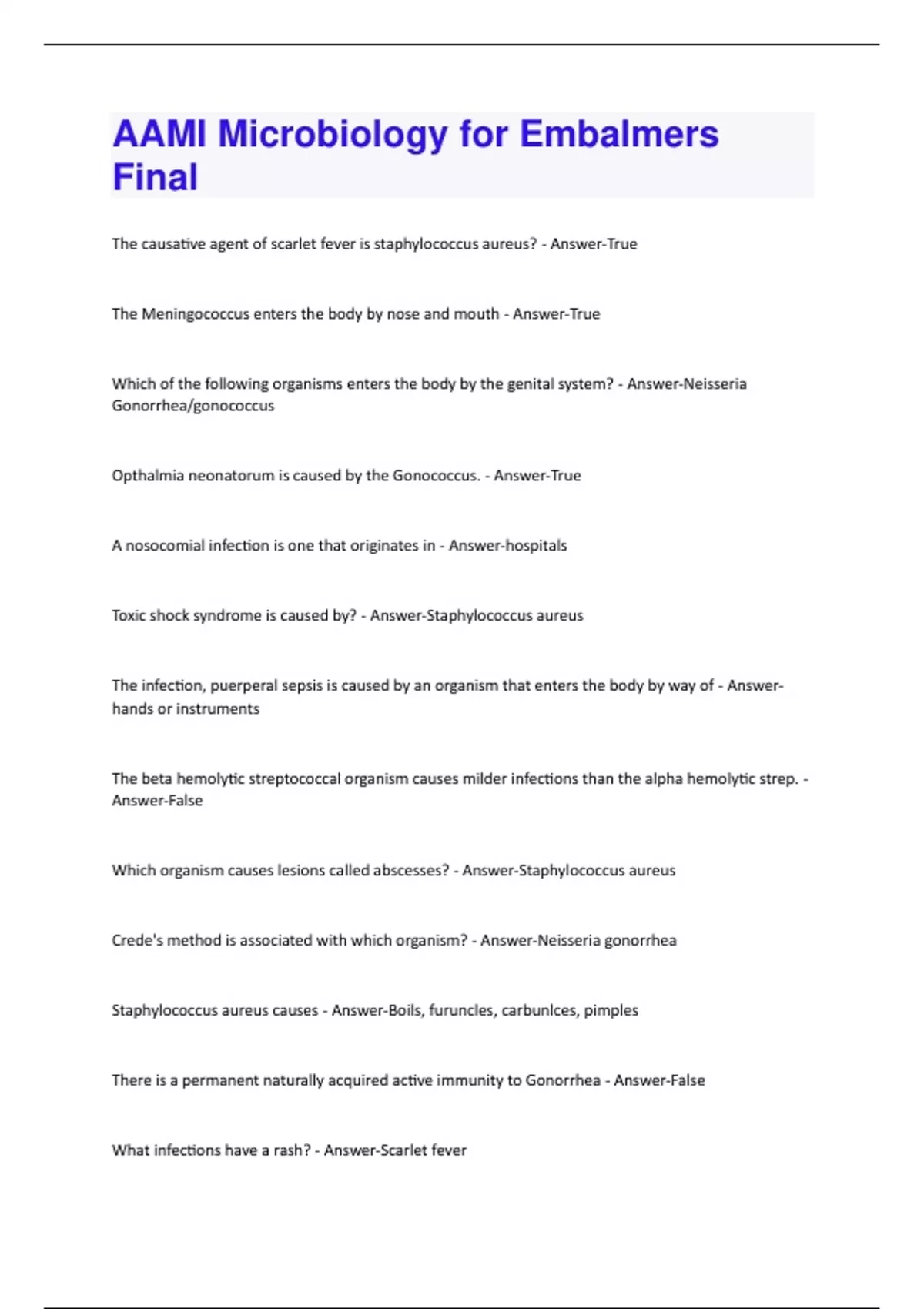 AAMI Microbiology for Embalmers Final Questions & Answers Already Passed!!