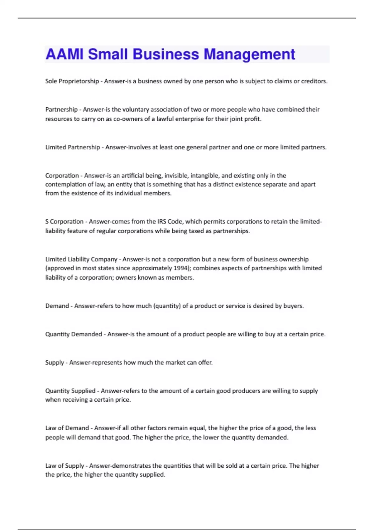 AAMI Small Business Management Questions & Answers Already Passed!!
