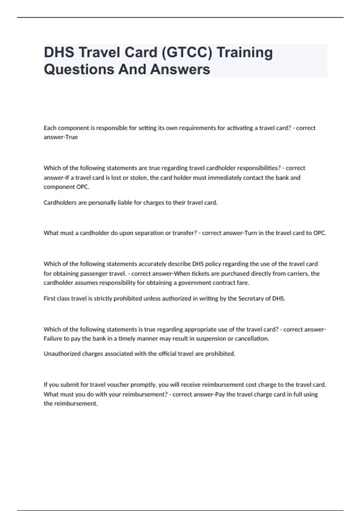 DHS Travel Card (GTCC) Training Questions And Answers