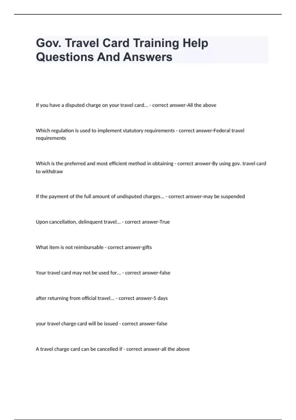 Gov. Travel Card Training Help Questions And Answers