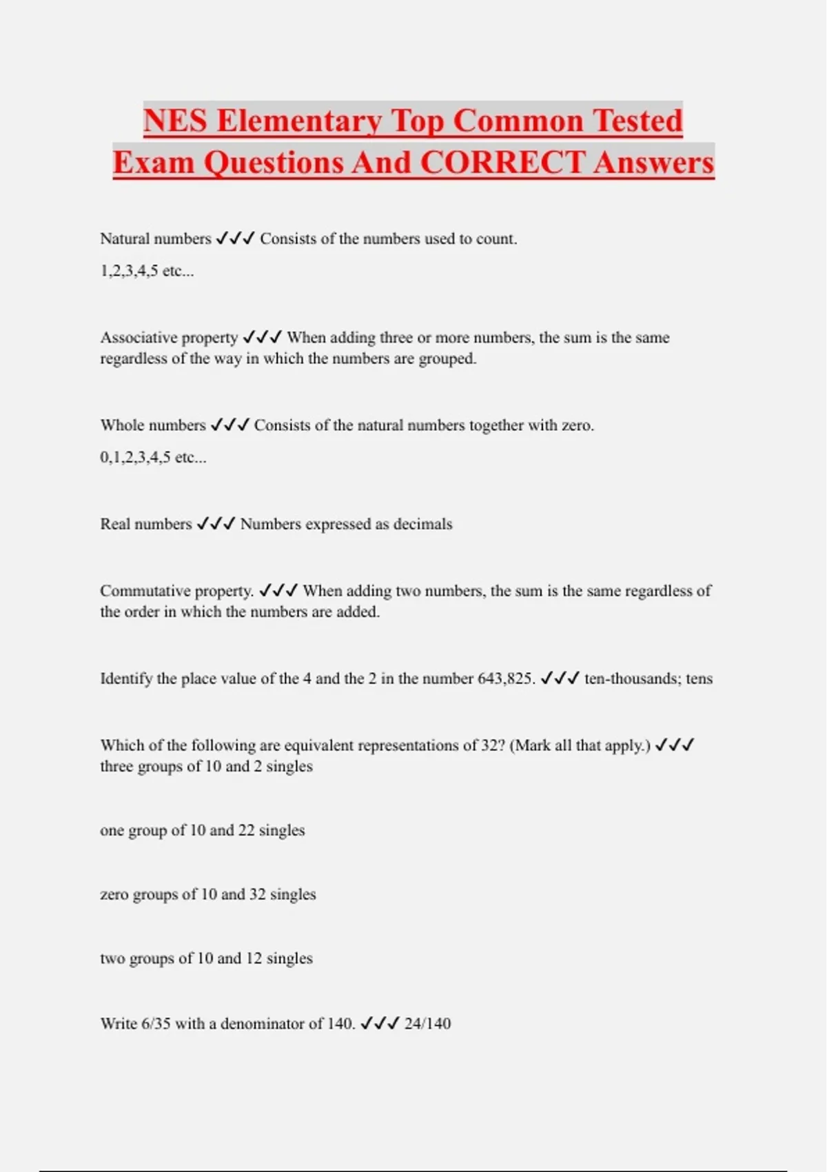 NES Elementary Top Common Tested Exam Questions And CORRECT Answers