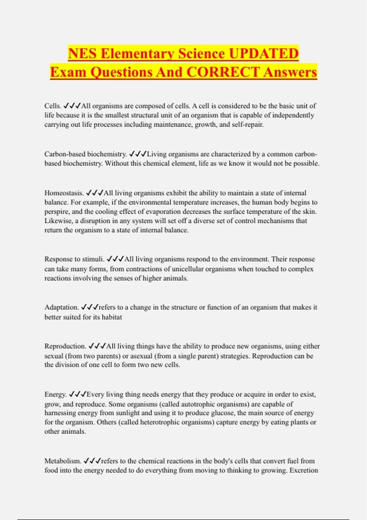 NES Elementary Science UPDATED Exam Questions And CORRECT Answers