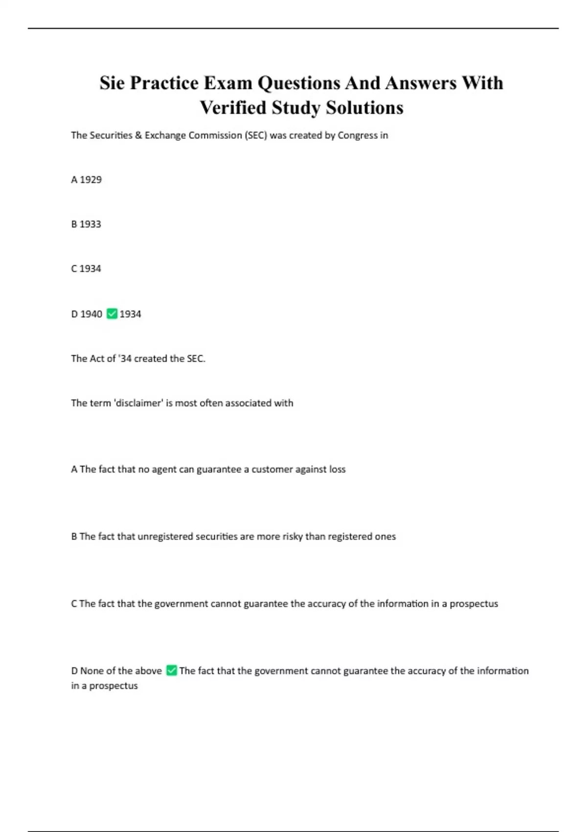 Sie Practice Exam Questions And Answers With Verified Study Solutions