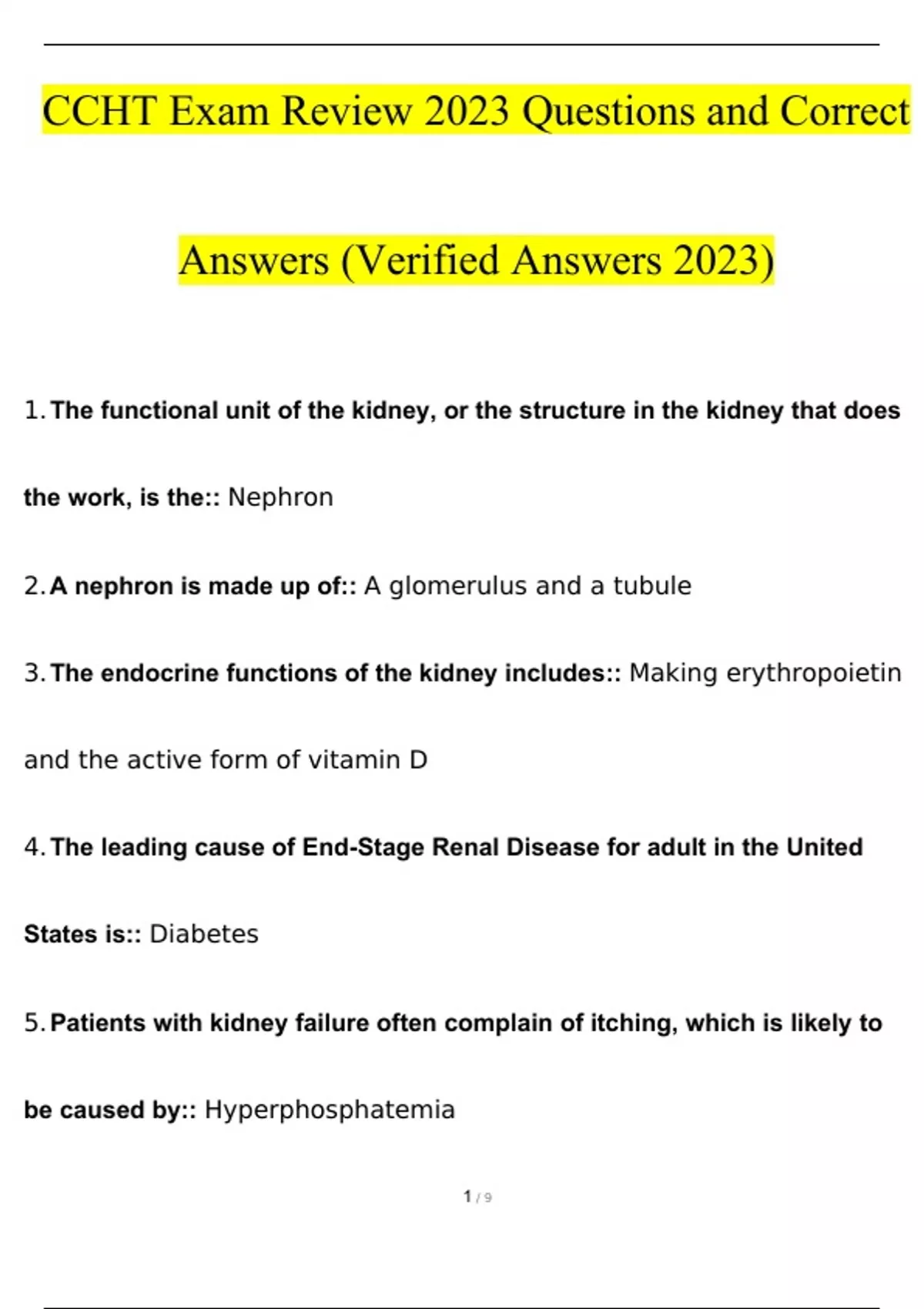CCHT STUDY BUNDLE PACK SOLUTION 2023 (Questions and Answers )(Verified Answers)