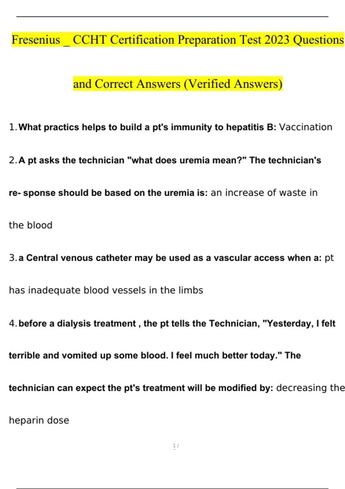 Fresenius _ CCHT Certification Preparation Test 2023 Questions and Answers (Verified Answers)