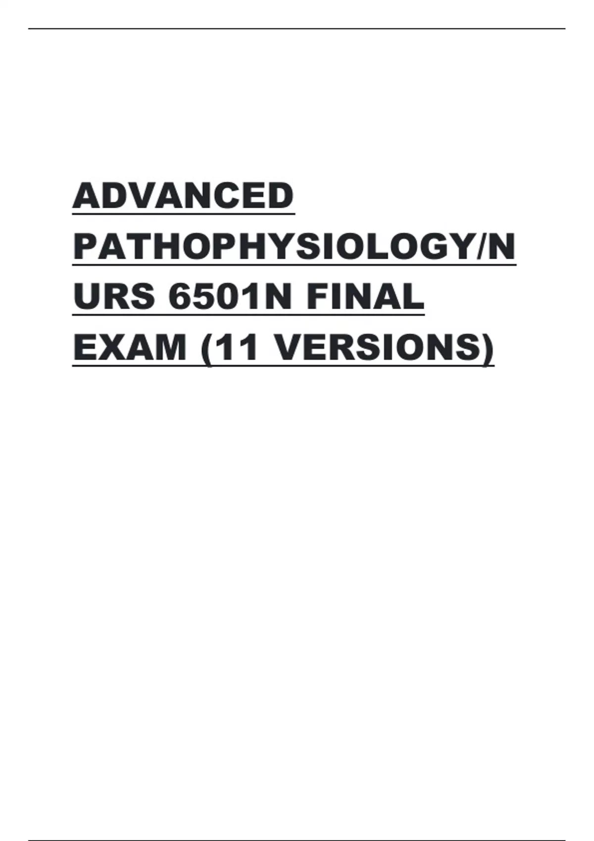 NURS 6501N Advanced Pathophysiology Final Exam (11 Versions)