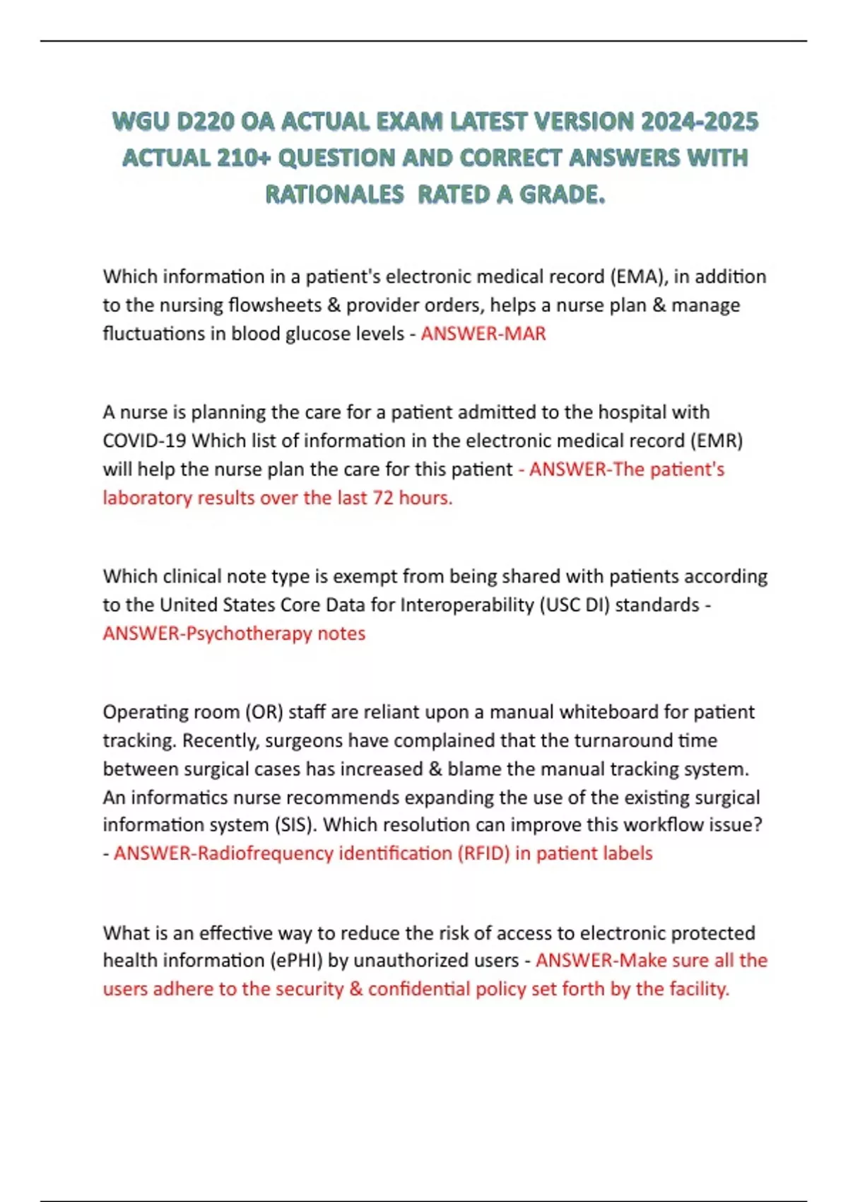 WGU D220 OA ACTUAL EXAM LATEST VERSION ACTUAL 210+ QUESTION AND CORRECT ANSWERS WITH RATIONALES RATED A GRADE.