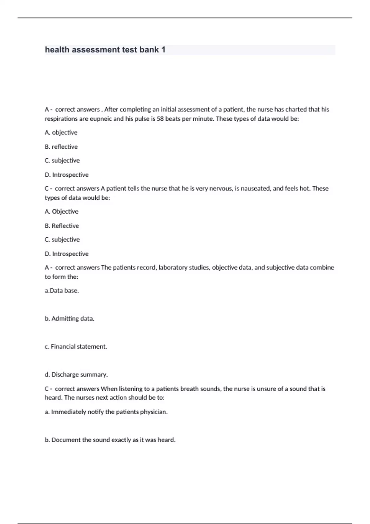 A - correct answers . After completing an initial assessment of a patient, the nurse has charted that his