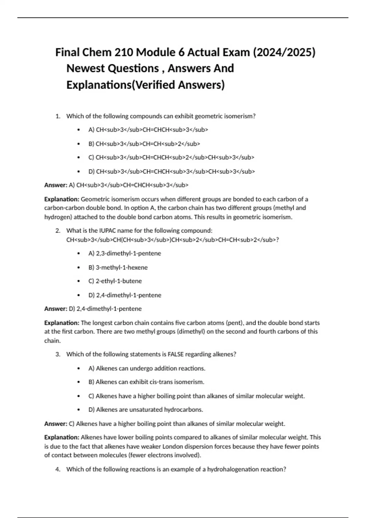 Final Chem 210 Module 6 Actual Exam (2024/2025) Newest Questions , Answers And Explanations(Verified Answers)