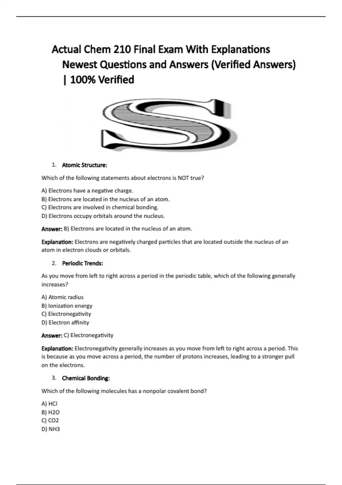 Actual Chem 210 Final Exam With Explanations Newest Questions and Answers (Verified Answers) | 100% Verified