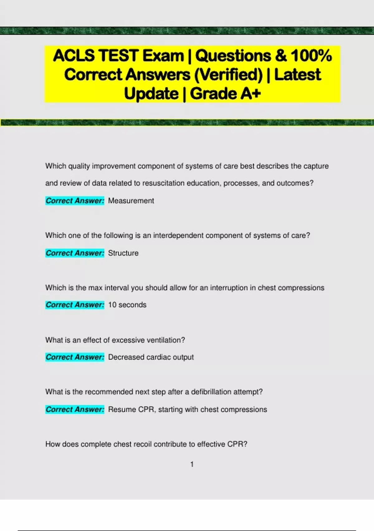 ACLS TEST Exam | Questions & 100% Correct Answers (Verified) | Latest Update | Grade A+
