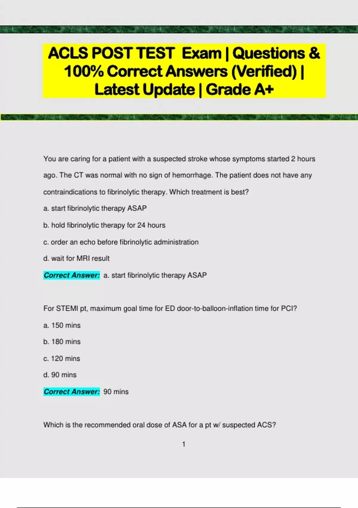 ACLS POST TEST Exam | Questions & 100% Correct Answers (Verified) | Latest Update | Grade A+