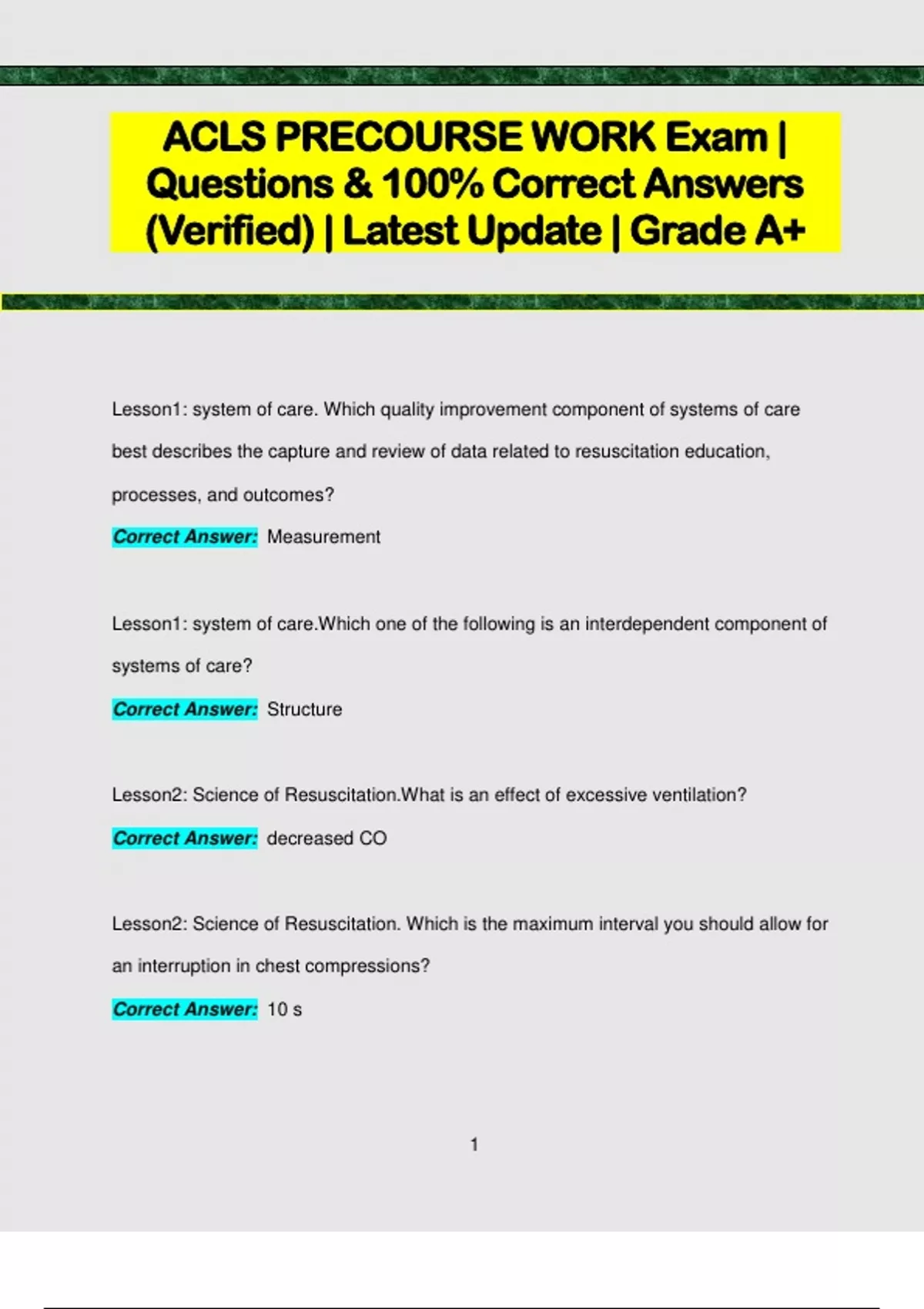 ACLS PRECOURSE WORK Exam | Questions & 100% Correct Answers (Verified) | Latest Update | Grade A+