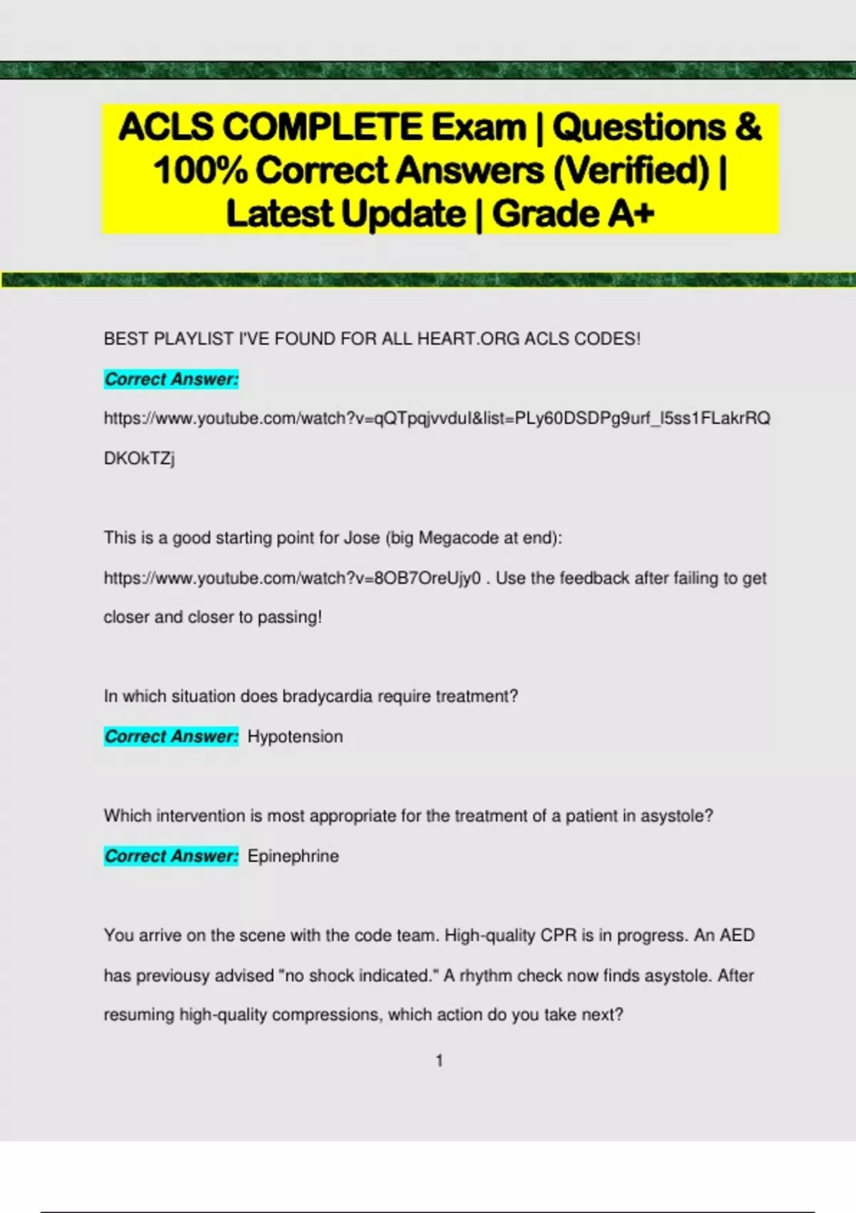 ACLS COMPLETE Exam | Questions & 100% Correct Answers (Verified) | Latest Update | Grade A+