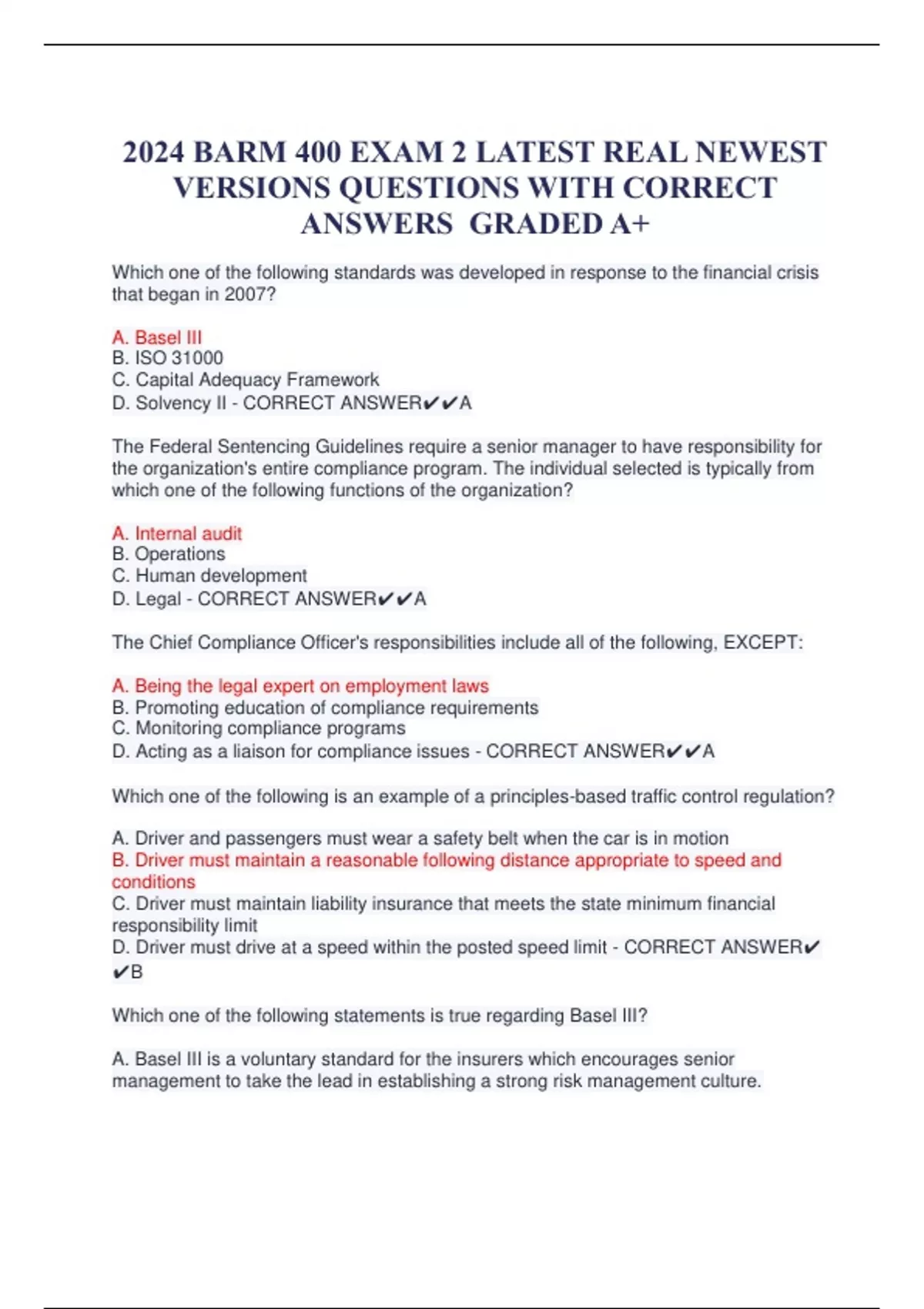 2024 BARM 400 EXAM 2 LATEST REAL NEWEST VERSIONS QUESTIONS WITH CORRECT ANSWERS GRADED A+