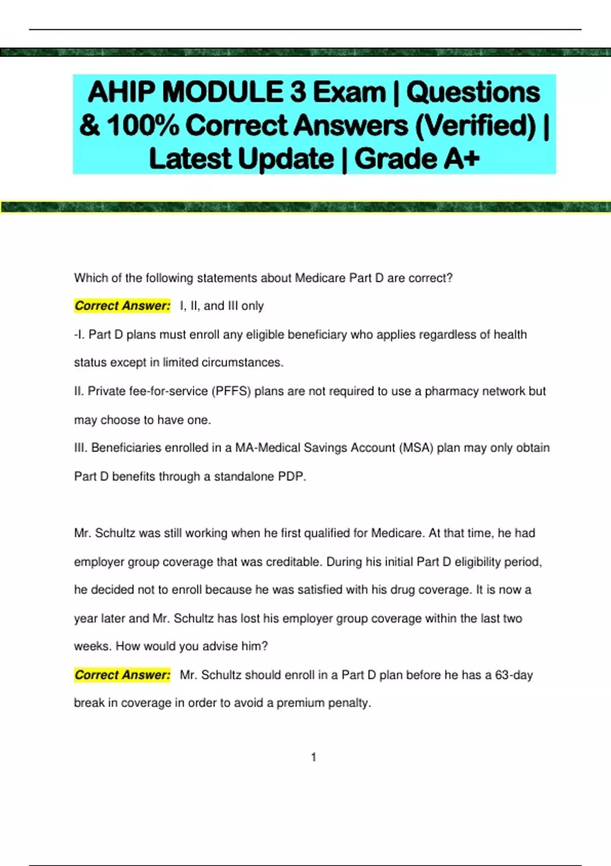 AHIP MODULE 3 Exam | Questions & 100% Correct Answers (Verified) | Latest Update | Grade A+