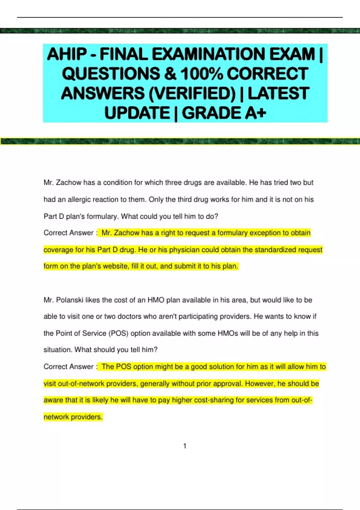 AHIP - FINAL EXAMINATION EXAM | QUESTIONS & 100% CORRECT ANSWERS (VERIFIED) | LATEST UPDATE | GRADE A+