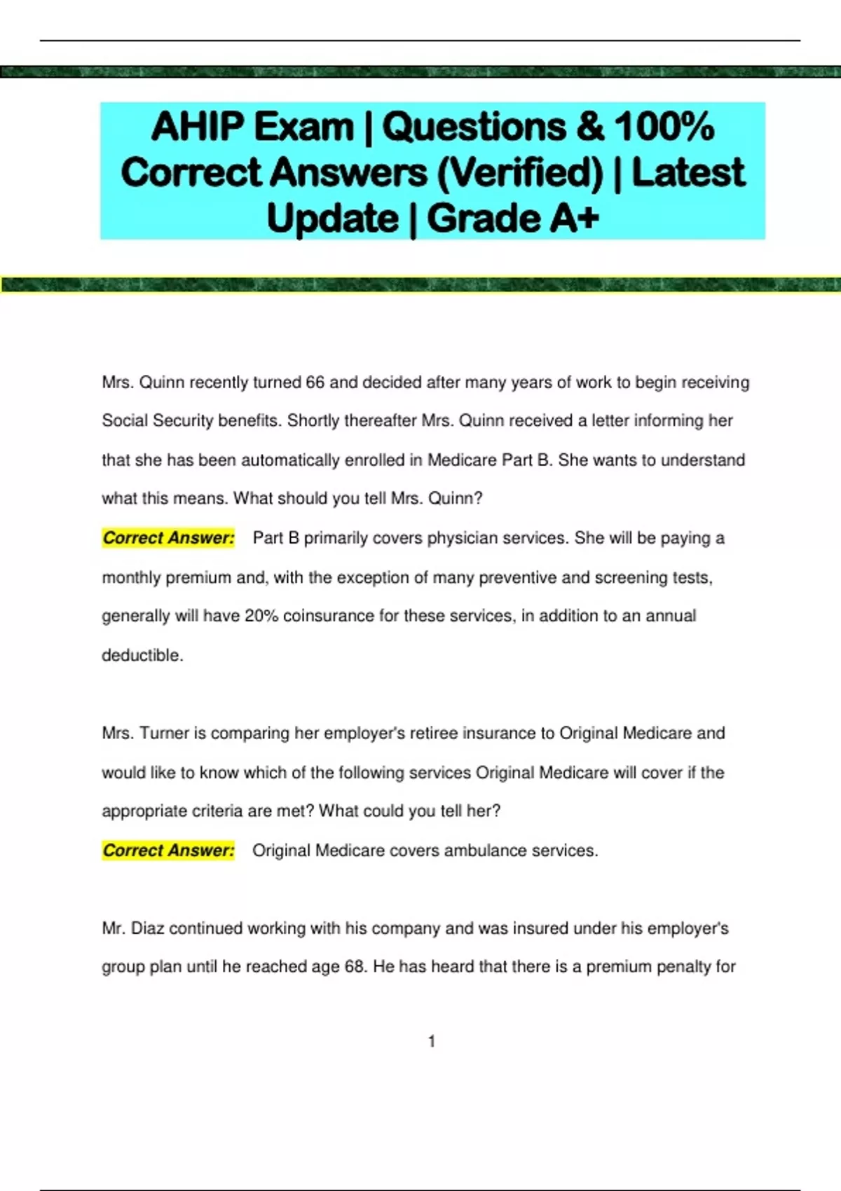 AHIP Exam | Questions & 100% Correct Answers (Verified) | Latest Update | Grade A+