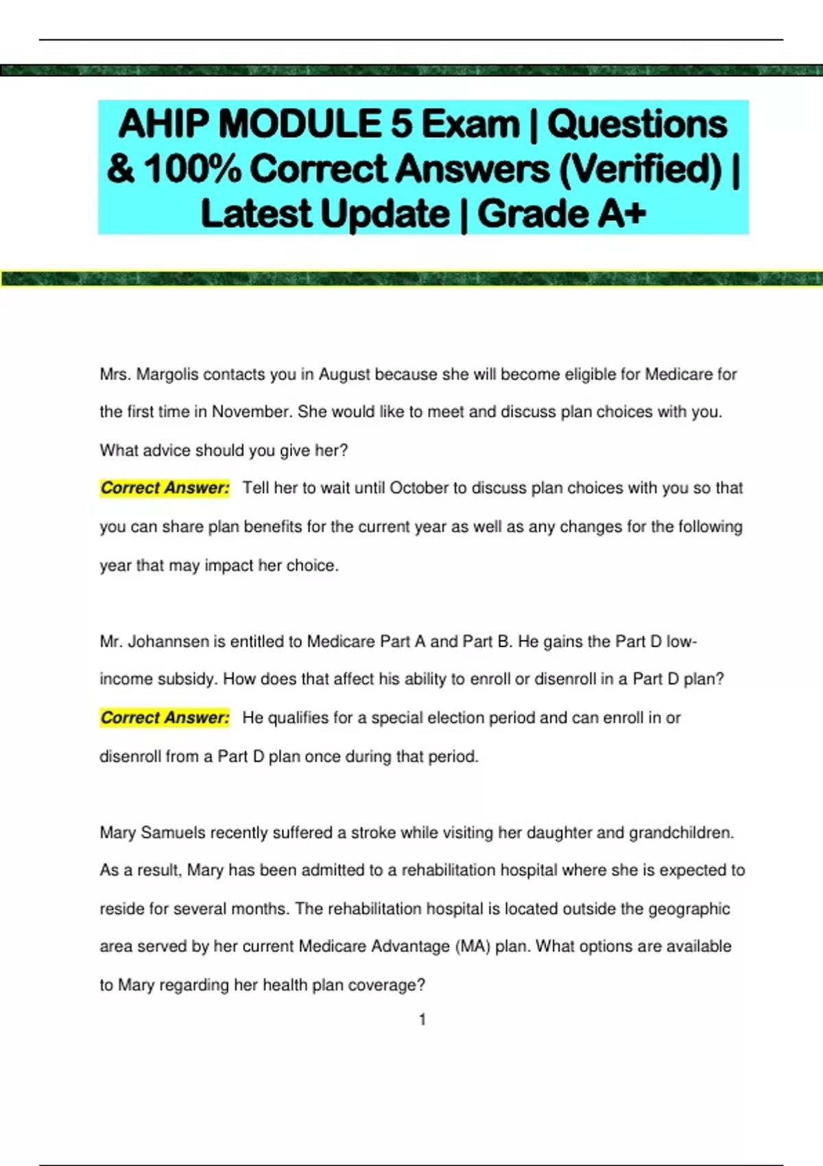 AHIP MODULE 5 Exam | Questions & 100% Correct Answers (Verified) | Latest Update | Grade A+
