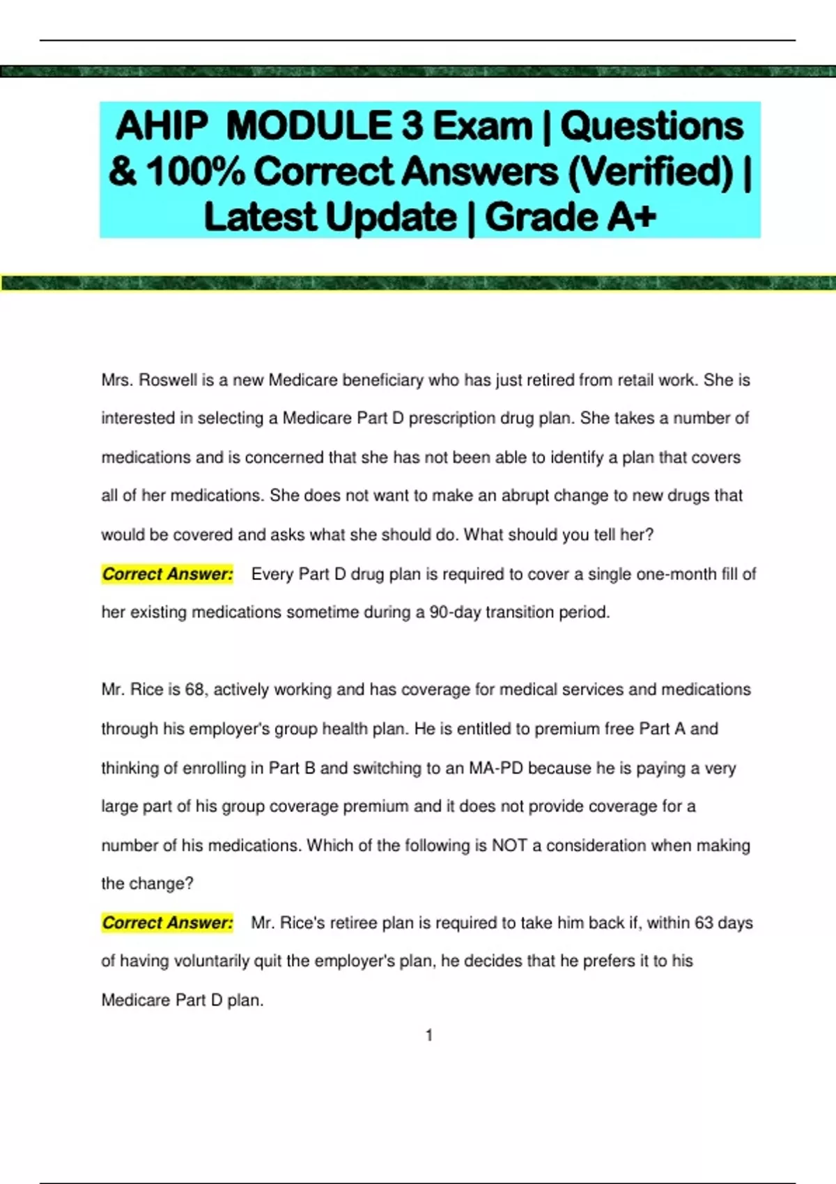 AHIP MODULE 3 Exam | Questions & 100% Correct Answers (Verified) | Latest Update | Grade A+