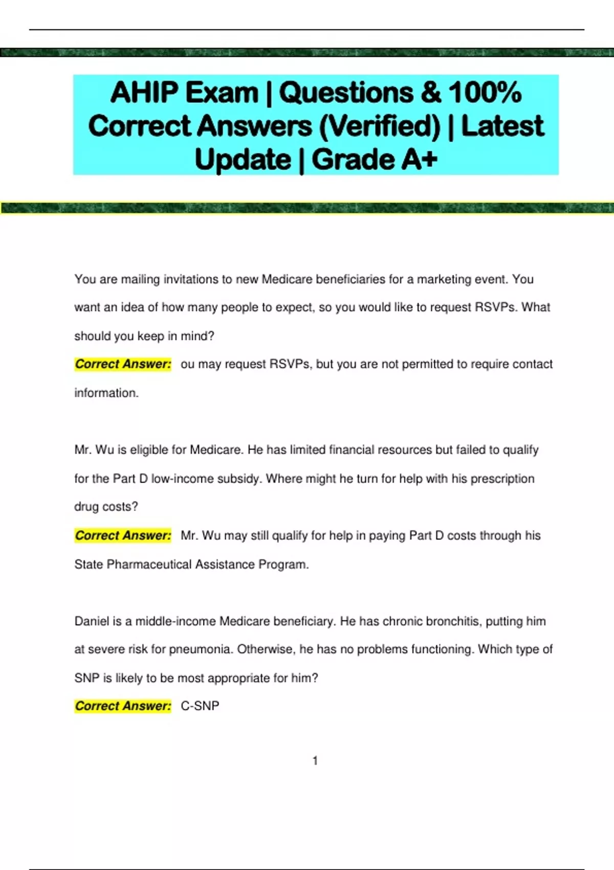 AHIP Exam | Questions & 100% Correct Answers (Verified) | Latest Update | Grade A+