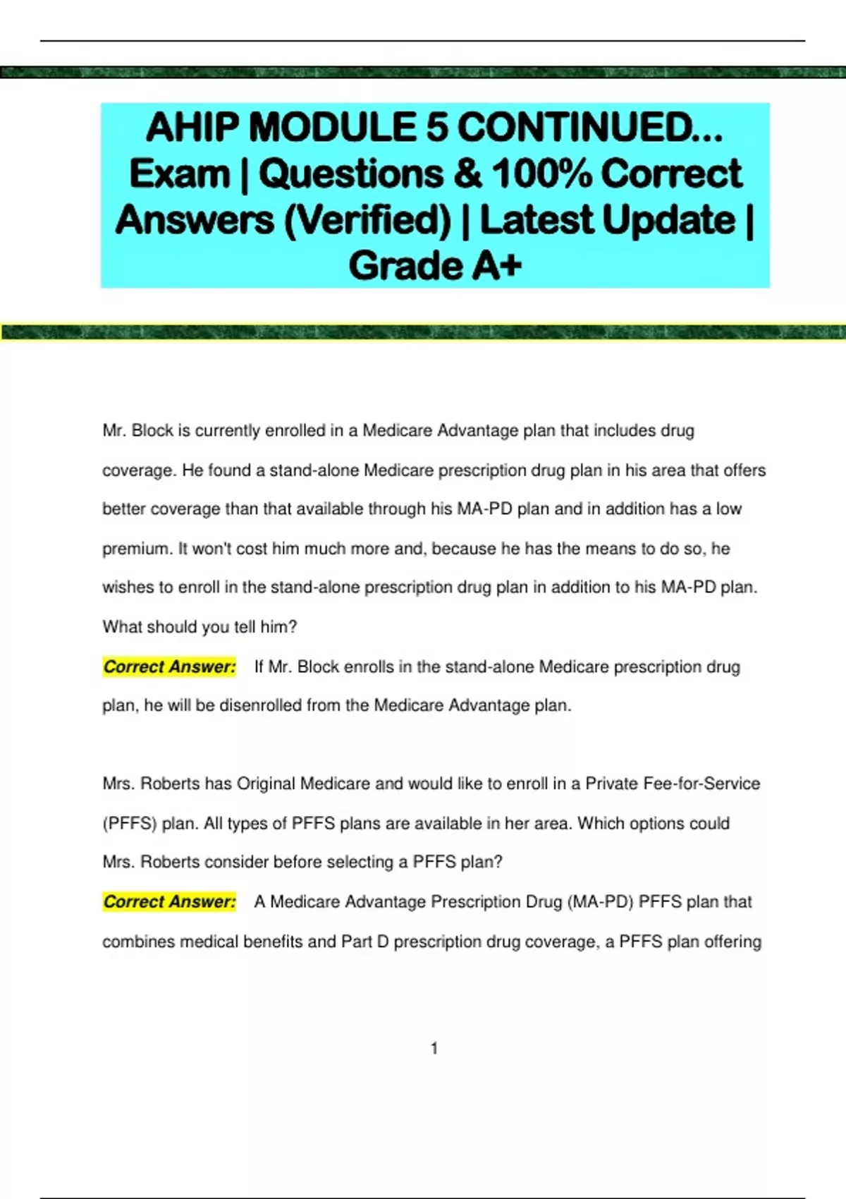 AHIP MODULE 5 CONTINUED... Exam | Questions & 100% Correct Answers (Verified) | Latest Update | Grade A+